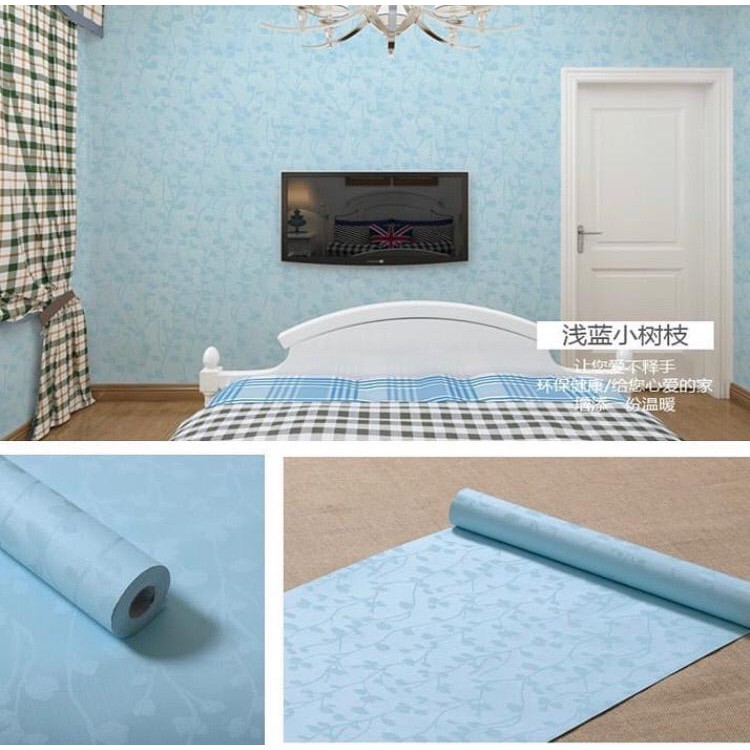 Jual wallpaper polos biru tekstur bunga 45cmx10mtr real pict jakarta utara feris wallpaper tokopedia.